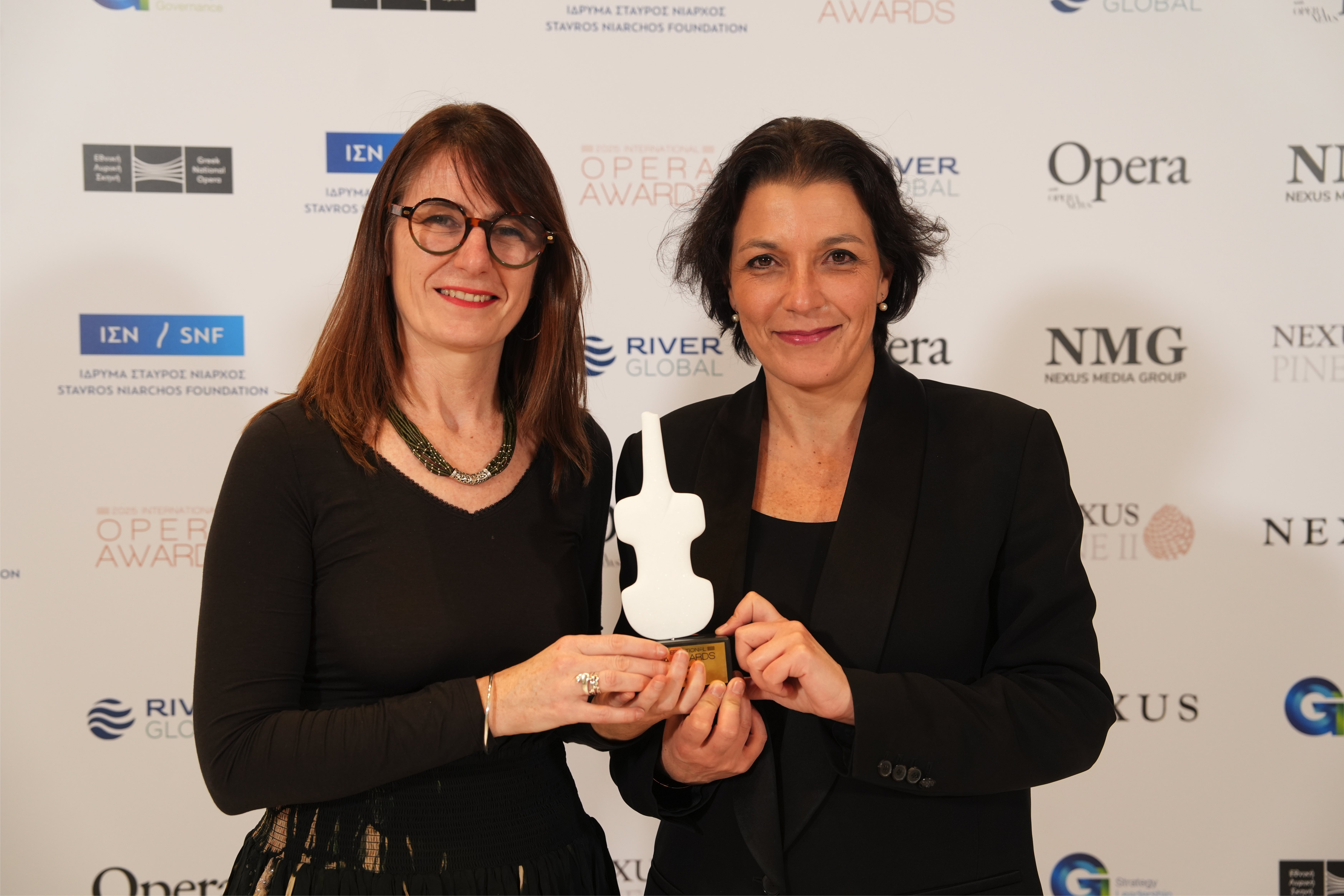 Antonella Zedda, directrice générale et artistique de l’Opéra de Dijon, et Jacqui Howard, chargée de diffusion du Poème Harmonique, ont eu le privilège de recevoir ce prix en Grèce, en présence des plus grands noms de l’art lyrique.