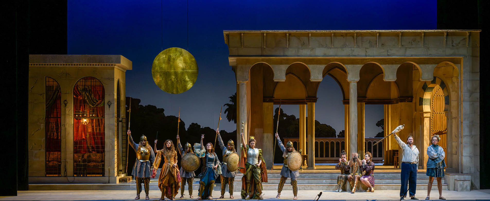 Palais aux colonnes sculptées d’arabesques et imitant la pierre, harem entouré de grilles ajourées qui laissent planer un voile de mystère, bassin aux carreaux ornés de motifs mauresques, et paysages exotiques évoquant la nature de l’île mythique où se déroule l’intrigue : chaque détail des décors de ce nouvel opéra s’ancre dans un réalisme captivant.