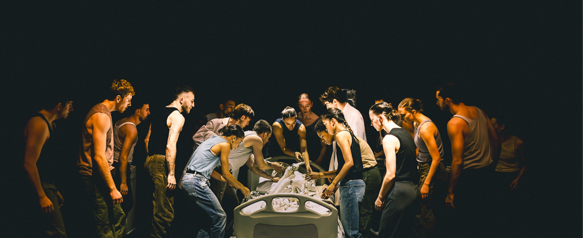 Ce ne sont pas des pensées sombres qui habitent les deux artistes mais plutôt une volonté de réconciliation avec la mort, l’envie d’embrasser ce mystère insondable que l’on évacue trop souvent de nos vies quand il devrait en être un pilier essentiel. Pour cela, Crystal Pite et Simon McBurney mobilisent les moyens de la danse et du théâtre en une série de visions d’une grande puissance esthétique, où les mouvements en disent plus long que tous les discours. Dans le début de la trilogie entamée en 2022 avec Figures in Extinction [1.0], la chorégraphe emprunte des états de corps au monde animal mais aussi aux glaciers ou aux rivières, égrenant la liste de tout ce qui est en voie d’extinction sur notre planète. Après une deuxième partie centrée sur le fonctionnement du cerveau humain, le troisième et dernier volet suit l’intuition que nous confronter aux grandes questions sans réponse peut nous grandir et nous guider collectivement.