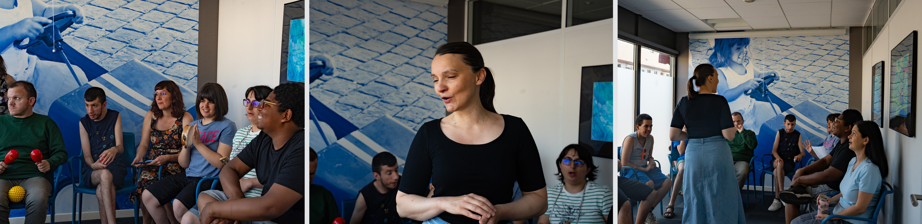 - Delphine Ribémont-Lambert, artiste du Chœur de l’Opéra de Dijon, intervient auprès du public de l’EAM Le Ponton. L’Établissement d’Accueil Médicalisé accueille des adultes atteints de troubles du spectre autistique qui ont participé à des ateliers de chant, l’occasion de développer curiosité, esprit d’autonomie et cohésion de groupe.