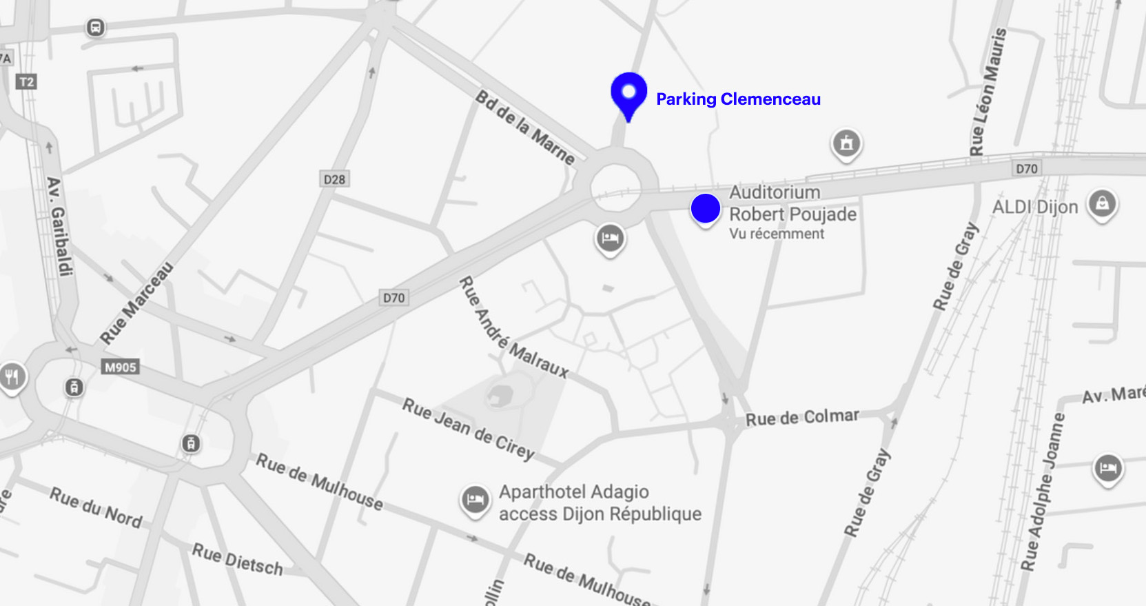Le parking Clémenceau est le parking le plus proche. Cependant certains événements organisés dans la Ville, notamment en novembre, rendent le parking difficile d’accès avec un remplissage du parking très conséquent.
